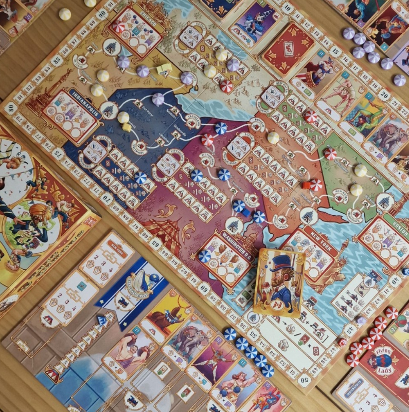¡El circo ha llegado a la ciudad! Bajo la carpa, malabaristas, payasos, magos, ilusionistas, forzudos y animales salvajes captan la curiosidad de un público entregado que aplaude sin cesar. Este juego de mesa nos transporta a finales del siglo XIX, cuando para muchos espectadores de pueblos y pequeñas ciudades el circo era el mayor entretenimiento que verían en meses. Sin embargo, las maravillas que muestra tu modesta compañía no son nada comparadas con las del majestuoso circo de P. T. Barnum, al que esperas unirte algún día.