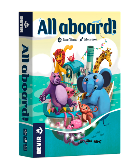 En All Aboard! deberás llevar a tu grupo de animales a un lugar seguro en las diferentes embarcaciones, pero ten cuidado de no exceder su capacidad, o de lo contrario se hundirán. Diseñado por Paco Yánez e ilustrado por Monsuros, este divertido juego de cartas se puede jugar en pareja o en grupos de hasta 5 jugadores, a partir de 7 años, en partidas de unos 20 minutos de duración.