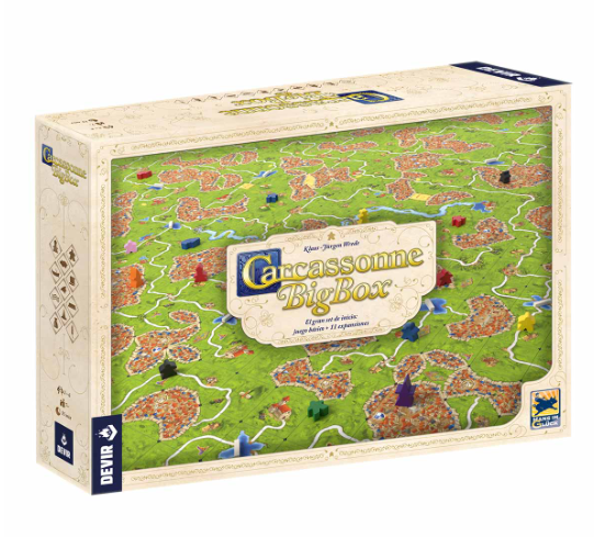 Carcassonne Big Box es una edición especial del emblemático juego familiar de colocación de losetas Carcassonne, que además del título base incluye 11 expansiones: El río, El abad, Posadas y catedrales, Constructores y comerciantes, Máquinas voladoras, Despachos, Transbordadores, Minas de oro, Mago y bruja, Ladrones y Círculos en los cultivos. Creado por Klaus-Jürgen Wrede, está ilustrado por Anne Pätzke y Chris Quilliams. Pueden participar entre 2 y 6 jugadores, a partir de 7 años, en partidas que duran algo más de media hora.