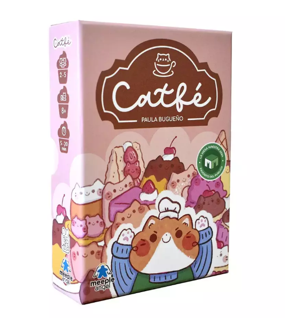 Catfé es un encantador juego de mesa en el que los jugadores asumen el papel de chefs de una cafetería con temática felina, dirigida por la gata pastelera Moka. Después de años de trabajo arduo, Moka ha abierto su cafetería y necesita la ayuda de nuevos chefs para satisfacer la creciente demanda de deliciosos postres inspirados en gatos. En Catfé, el objetivo es reunir un número determinado de postres antes que los demás jugadores, pero cuidado, si tienes demasiados postres iguales, Moka no estará contenta y perderás la partida.
