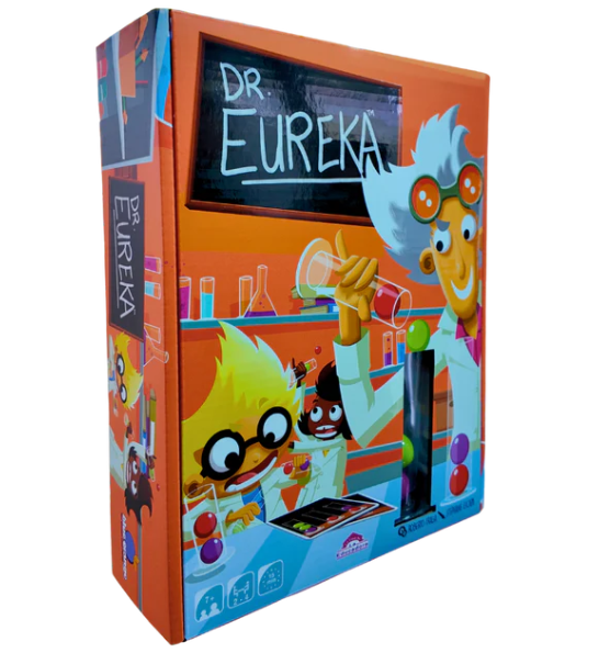 ¡Ayuda al Dr. Eureka a completar sus experimentos sin derramar ni una gota! En este juego de mesa rápido y visual, los jugadores deben reorganizar bolas de colores entre tubos de ensayo para replicar el patrón que aparece en una carta de reto. Sin tocar las bolas con las manos, deben moverlas con precisión y rapidez, respetando el orden y la posición. El primero en completar correctamente el experimento gana la carta.