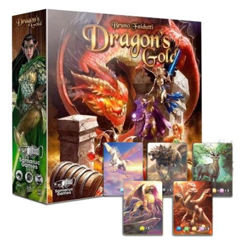 Dragons Gold – Nueva Ediciónes un juego de cartas rápido y divertido en el que tendrás que negociar por cada tesoro conseguido, ¡en menos de un minuto! Con dos variantes de juego, nuevo arte y una mini ampliación totalmente nueva, el clásico de Bruno Faidutti vuelve a estar disponible para ser disfrutado por todo el mundo.