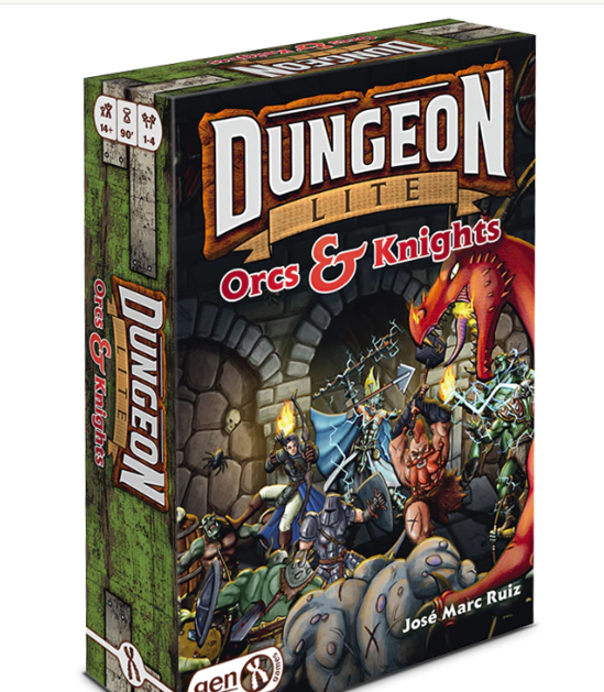 El objetivo del juego es encontrar la sala y matar al fabuloso animal, pero debes hacerlo rápido, pues los Orcos han dado la alarma y pronto llegarán numerosos enemigos. Cuando el dragón muera, la partida termina. Dungeon Lite, Orcs and Knights es un juego cooperativo de supervivencia para 1 a 4 jugadores, luchadores valientes que gracias a la colaboración entre ellos, la mejora de su equipamiento y la gestión de las acciones, alcanzarán la victoria.