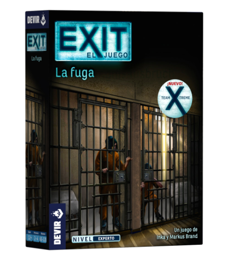 Exit: La fuga es un juego de escape cooperativo diseñado por Inka y Markus Brand, que se puede disfrutar en pareja o en grupos de hasta 4 personas, a partir de 12 años, en partidas que pueden durar entre 60 y 120 minutos. A través de 88 cartas, varios documentos, dos descodificadores y algunos objetos especiales, los jugadores explorarán e interactuarán con el entorno y todo lo que vayan encontrando. En esta edición, además, el grupo se dividirá en 2 equipos, pero deberéis seguir trabajando en equipo para tratar de escapar de la prisión.