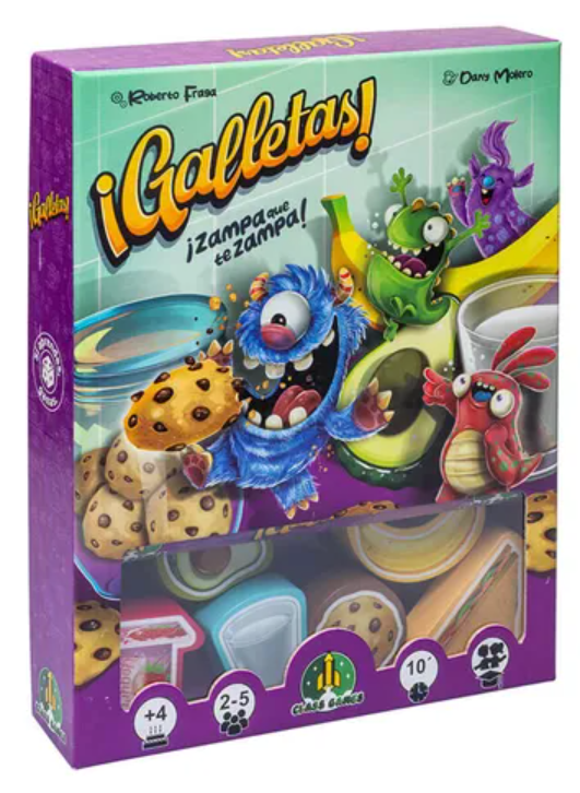 Galletas es un juego de mesa familiar donde los jugadores se convierten en monstruos con un gran apetito por los postres. El objetivo es encontrar el postre correcto antes que otros jugadores, siguiendo pistas de regaliz. El juego es ideal para 2 a 5 jugadores y tiene partidas rápidas de 10 a 20 minutos. Además, combina diversión y aprendizaje sobre la importancia de una alimentación saludable. Es perfecto para tardes familiares o reuniones con amigos