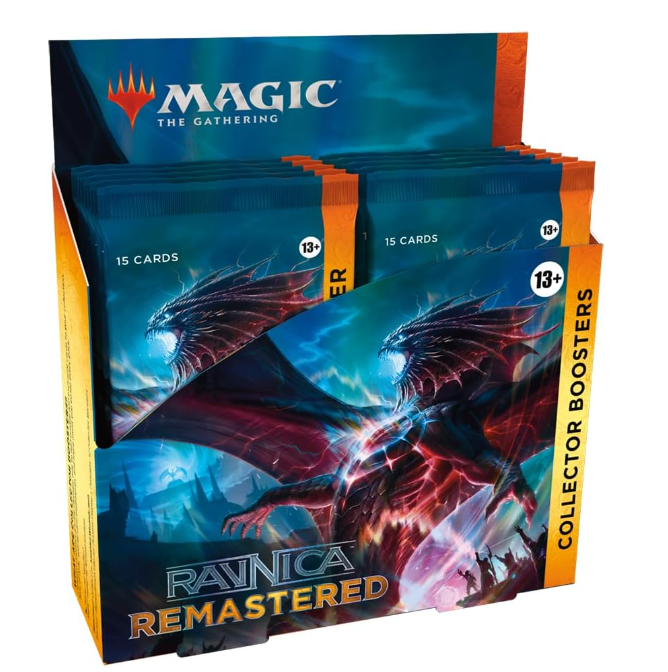 - Contenido: 12 refuerzos de coleccionista Ravnica Remastered, con 15 tarjetas MTG en cada paquete