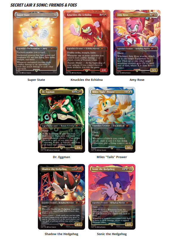 Sonic is his name, speed is his game, and he’s bringing that energy to Magic! The Sonic Superdrop is available now on MagicSecretLair.com. These drops are available in limited quantities. While there’s no hard end date to the sale, we will clean up the storefront from time to time.