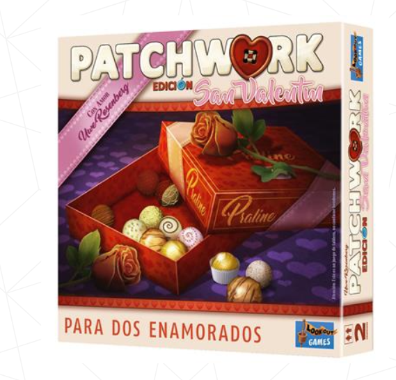 14 de febrero, día de los enamorados. San Valentín es un día especial para todos los enamorados ya que es el momento ideal para demostrar todo tu amor con regalos de todo tipo, pequeños y grandes. Puede que ese día prepares una cena romántica a la luz de las velas, o que compres un ramo de flores, o le regales una caja de bombones parecida a la caja de este juego. Patchwork San Valentín es el mismo juego que Patchwork básico. ¿ Cómo no vas a regalarle a tu amor esta maravillosa caja de bombones?
