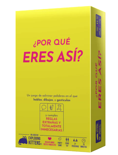 ¿Por qué eres así? es esa mezcla perfecta entre carcajadas y momentos incómodamente reveladores. Creado por Exploding Kittens y distribuido por Asmodee, este juego te pone a adivinar respuestas absurdas que revelan más de lo que esperabas sobre tus amigos… y sobre ti mismo.