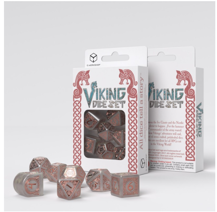 A treasure from the other side. We give you these uncompromising dice with a touch of Norse Mythology, like an ancient ring found in the cold and dark World of Mist. The Viking-style engravings surround digits written in an old runic font, making the dice mystical and appealing. The copper painting on a misty background brings to mind Viking’s ships in a dense fog of the Northlands.
