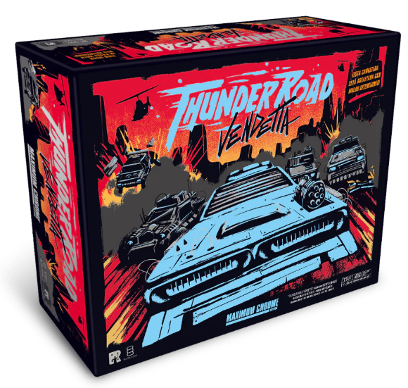 Thunder Road: Vendetta es un juego de turnos rápidos y decisiones arriesgadas. Dirige a tu equipo mientras recorren peligrosas carreteras, esquivan peligros, chocan contra coches y disparan sus armas. Y cuando todo lo demás falle, ¡llama al helicóptero!
