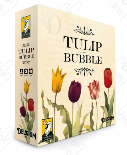 Tulip Bubble recrea aquellos años de fiera búsqueda de los bulbos perfectos. Los jugadores pujarán, comprarán y manipularán el mercado de tulipanes a su favor para aumentar el valor de sus especímenes a la vez que perjudican los de los rivales. Tulip Bubble sirve como título perfecto para iniciarse en los juegos económicos con unas reglas directas divididas en tres fases claramente diferenciadas y acompañadas de bellas ilustraciones y componentes de gran calidad.
