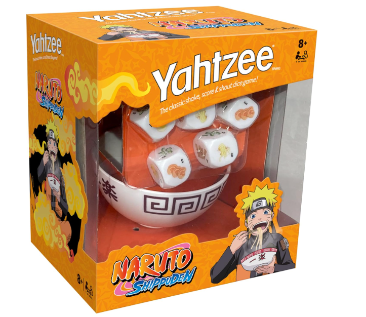 Redescubre el juego Yahtzee con esta edición especial de Naruto Shippuden, el manga y el anime épico; combina los diferentes ingredientes en los dados, como huevo, fideos, brotes de bambú o narutomaki